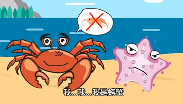 有一天螃蟹走在沙灘上,走著走著然後就踩到了海星